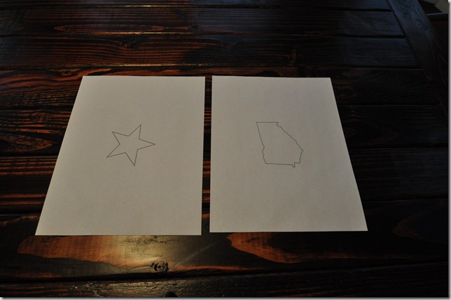 Step #1: Make a template of the shapes you want to use. Resize in photo editing software of your choice, if needed. I Googled my images and resized them in Photoshop Elements.
